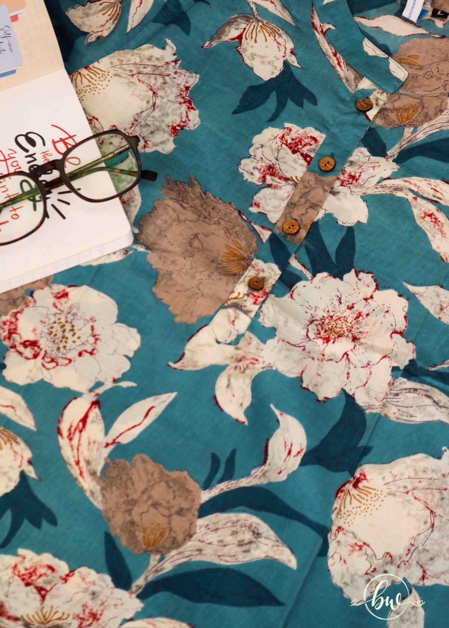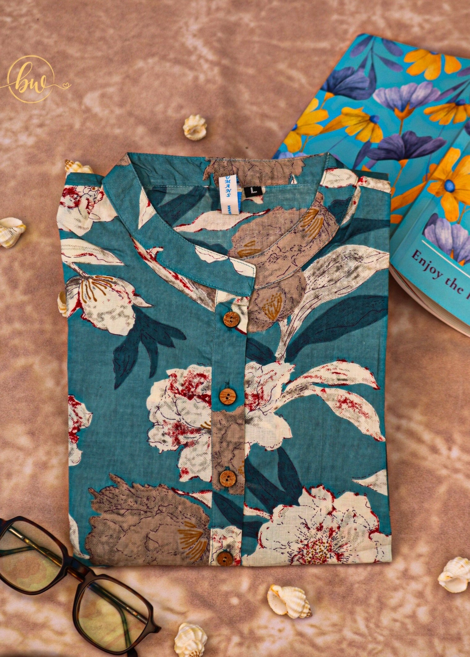 Step into a world of botanical beauty with our "Cerulean Flora Handblock Cotton Tunic." This exquisite tunic features a captivating, painterly floral design in soft whites, gentle grays, and hints of blush against a serene cerulean backdrop. Each blossom is meticulously handblock printed by skilled artisans, creating a wearable work of art.