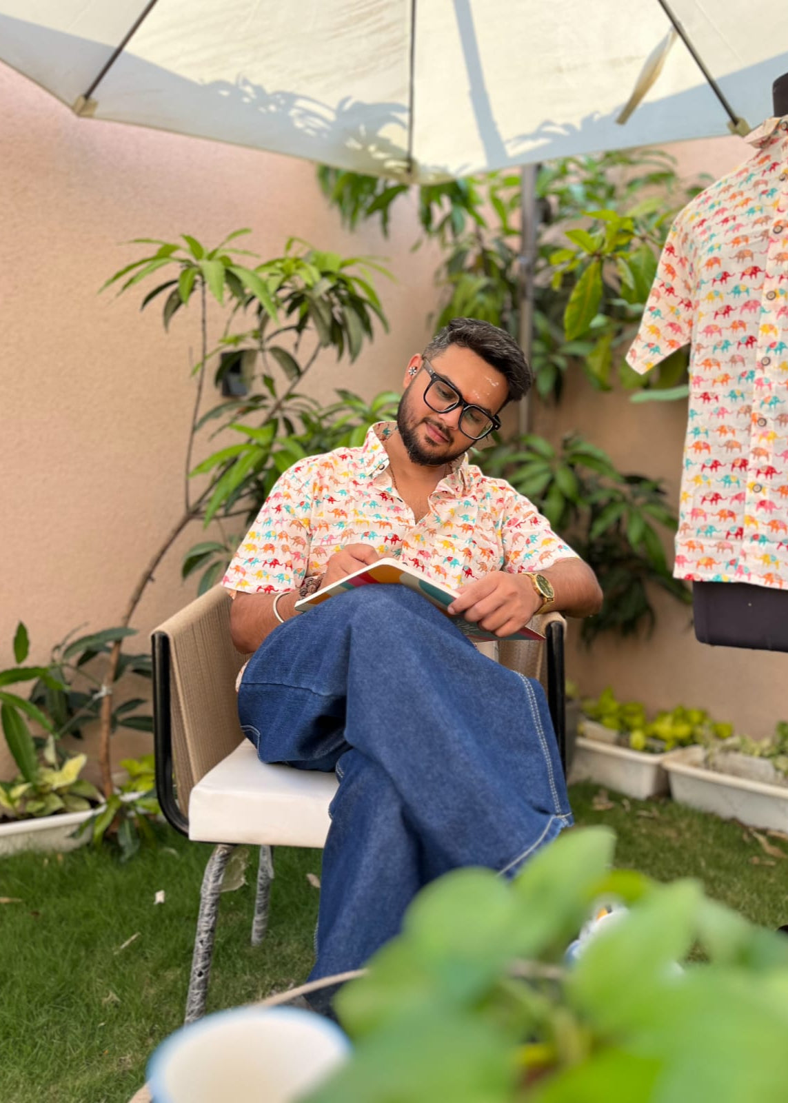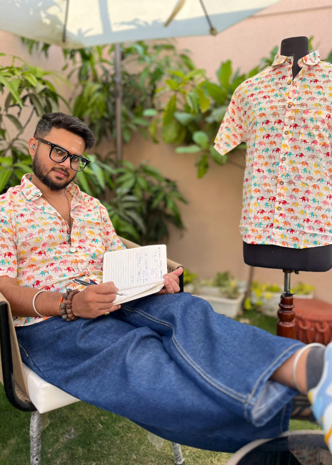 This fun shirt features a colorful elephant illustration on a crisp white background. The elephants adds a touch of whimsy and personality to this shirt.