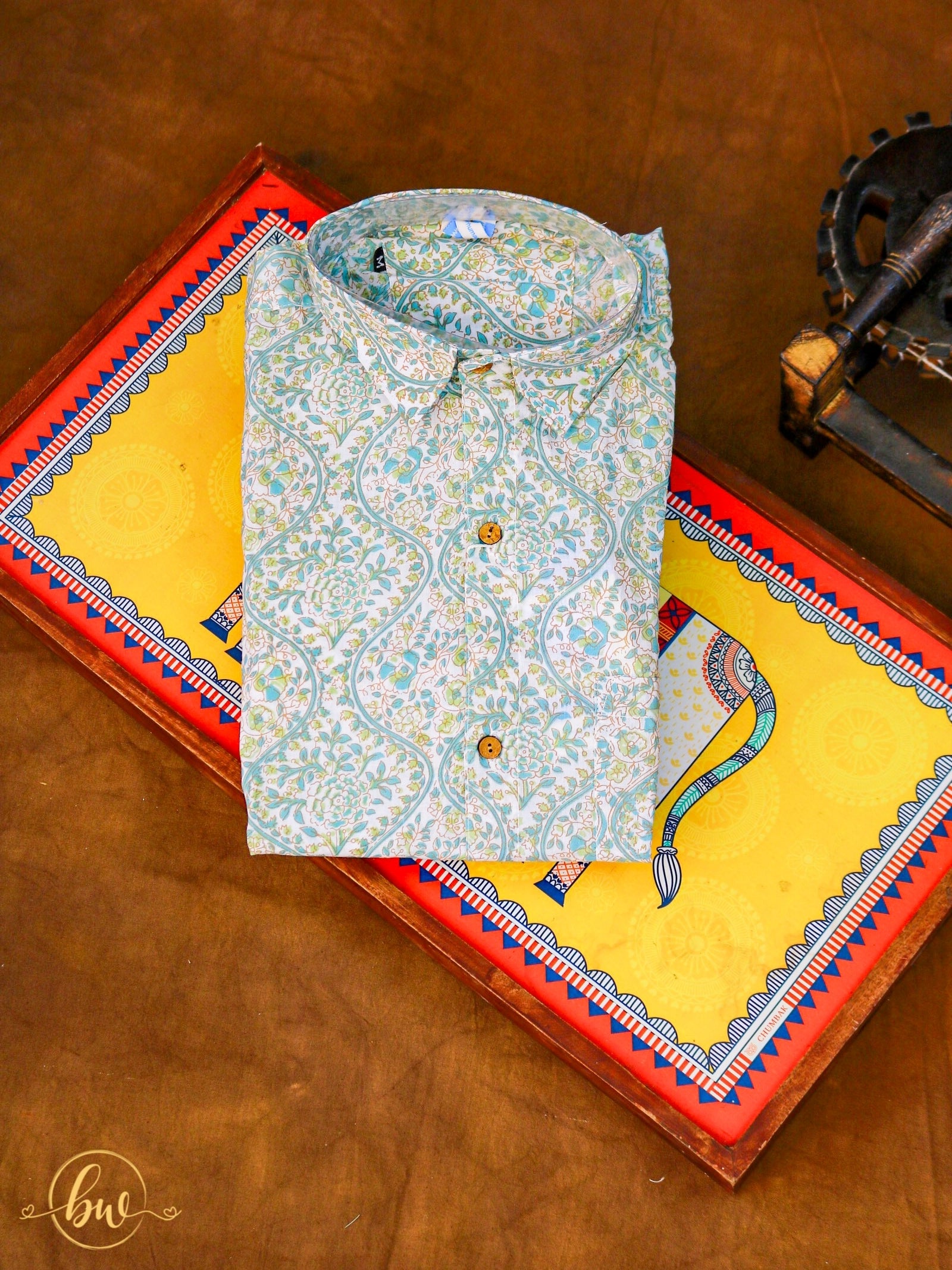 Capture the charm of a blooming meadow with our Wildflower Meadow shirt. This unique piece features a meticulously handblock printed design, showcasing a delicate array of wildflowers. The intricate print brings a touch of natural beauty to your wardrobe, while the classic details ensure timeless style. Crafted from soft, breathable premium cotton, this shirt provides exceptional comfort for all-day wear. The relaxed fit drapes effortlessly, flattering every figure, while the classic collar and short sleeves add a touch of refined polish. Whether you're exploring the countryside, picnicking in the park, or simply seeking a touch of natural inspiration in your everyday life, the Wildflower Meadow shirt is a timeless addition to your wardrobe. Each shirt is a testament to the artistry of handblock printing, ensuring that you own a piece as unique and captivating as a wildflower meadow itself.